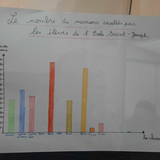 Chaque classe a compté sa récolte et a ensuite utilisé les marrons pour divers apprentissages : comptages de paquets, notions de périmètre et d'aire, réalisation de graphiques....